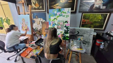 Nosso espaço de pintura em tela conta com cavaletes em vários estilos, de acordo com o formato de seu trabalho