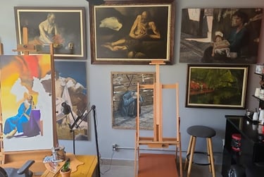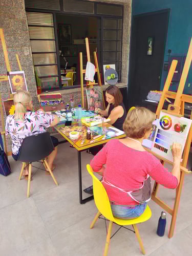 Nosso espaço de pintura em tela conta com cavaletes em vários estilos, de acordo com o formato de seu trabalho